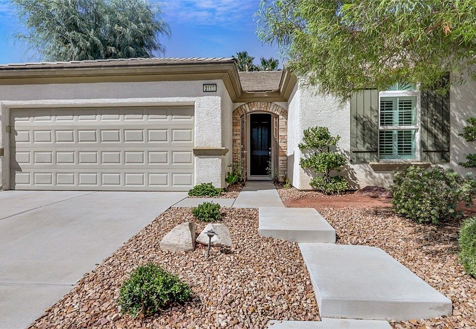 This stunning 3BD, 2BA (1612 sq ft) Sun City Anthem (55+) Virigina model shows beautifully inside & out. Completely move-in ready & located on a quiet interior street just blocks away from both SCA Community Recreation Centers. Exterior offers great curb appeal w/inviting walkway & gated entry. Interior highlights include fresh paint, tile in all traffic areas, custom shutters throughout, large great room, multiple dining areas, granite kitchen w/SS appliances, interior laundry room, large primary suite & bath w/walk-in closet, plus 2 separate guest rooms & full bath. Professionally cleaned throughout. 2-car garage offers built-in cabinets, epoxy flooring & soft water system along w/newer HVAC system & hot water tank. Rear yard offers large private covered patio area, mature shade trees & easy maintenance. Furniture is also optionally available. Low taxes @ $2755/yr & low HOA fees @ $446/quarter. Easy to show anytime. Ideal price point & great community means this home will not last.