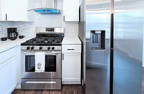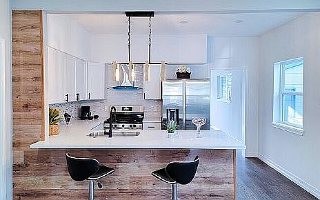 New windowsNew flooringStainless steel appliancesSleek quartz countertopsNew kitchenBreakfast barNew roof