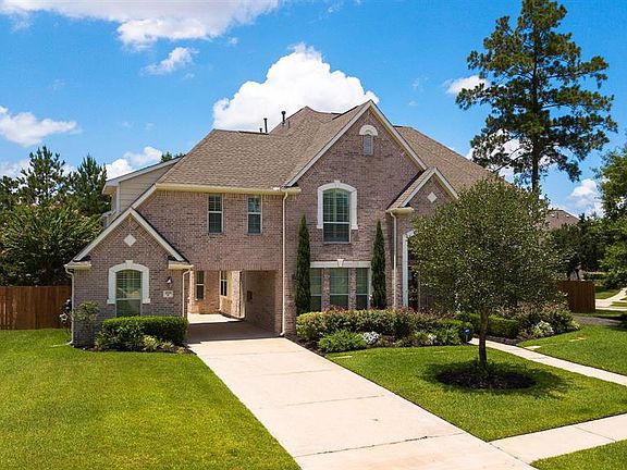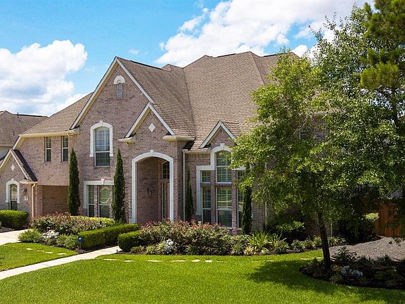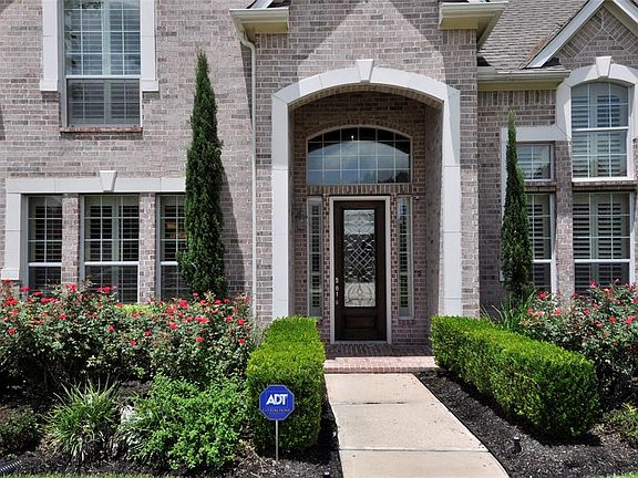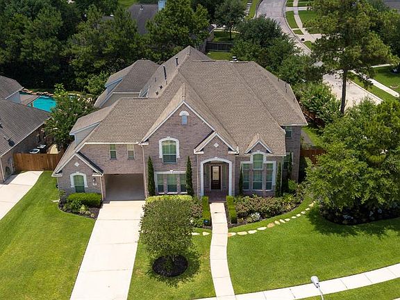 Gorgeous home on an over sized corner lot on quiet street. Incredible mature landscaping with fruit trees and lots of privacy. High ceilings, arched doorways and architectural details. 2 story foyer with dome ceiling and art niches. 2 story Formal Study with wainscoting and double doors. Formal Dining with judges paneling and butlers pantry. Kitchen with island, breakfast bar, stainless appliances, huge pantry, granite counters, warm wood cabinets, and eating area. 2 story Family room with fireplace, built-ins, and curved wall of windows. Master with tray ceiling, curved wall of windows, and en-suite bath with jetted tub, shower w/seat & huge walk-in closet with built-in shelving and cabinetry. 2 staircases. Upstairs are 3 large bedrooms, one w/private bath & 2 share Jack and Jill bath. Additional Game room, Media Room and extra flex room. Plantation shutters, hand-scraped wood flooring and 3 car garage. Outside is slate tile patio & lush landscaped yard with play house. Dry in Harvey!