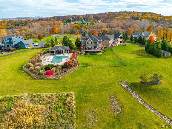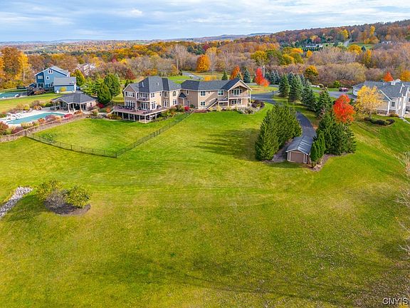 This one-of-a-kind home is sure to impress, sitting on ~6.32 acres perched atop perfect elevation offering picturesque views. Built in '03 w/attention to detail & no expenses spared, this home offers 6/7 bedrooms + office & 4.5 baths. There's also an exquisite pool house w/full kitchen, full bath & hot tub. Heated IG pool complete w/perfect landscaping--almost like an infinity pool with the elevation as you overlook the hill & the beautiful scenery below including the lake in the distance. The finished walkout lower level offers massive bar, game room & entertaining area, a bedroom & full bathroom for perfect escape space, in-law, teen area or whatever you'd like. Primary bedroom offers private balcony & a double-sided gas FP shared w/the oversized ensuite. Open kitchen/living area w/gas FP is the perfect gathering place w/plenty of windows to appreciate the views from inside OR step out onto one of the many decks/balconies overlooking the rear yard which does go into the wooded area. Formal dining w/2-story ceiling & huge windows. Attached 5.5 car garage + detached 1.5 car. No showings prior to Nov 4th@10AM. Square footage from tax records doesn't count lower level.