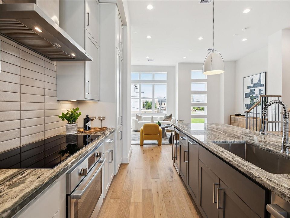 Located minutes from Downtown, Midtown, Montrose, and EaDo, Point East is a collection of 33 homes allowing you to be part of a unique community. Point East gives you options without sacrificing style or quality- choose from two finish packages to ensure your home fits your style. The community is gated and contains a private resident's park with water features. All homes feature oversized windows and enormous primary suites for your comfort. This particular home features downtown skyline views from the living room, primary bedroom, and private rooftop deck.