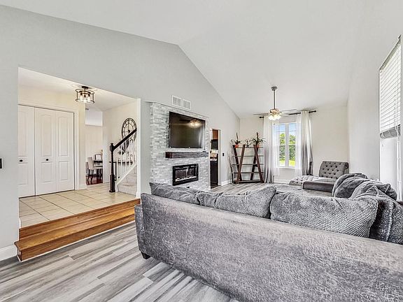 Welcome to the highly sought out Four Points community with some of the best schools in the area. Style and comfort embodies this charming four bedroom, 3.1 bathroom home. Enjoy summers by the above-ground pool and cozy deck. Vaulted ceilings, slate floors, and a fireplace add elegance to the main floor. The spacious kitchen features a peninsula with ample cabinet space. Retreat in the primary bedroom with vaulted ceiling and en-suite. The basement features a bedroom, full bathroom, bar, and a family room for hosting. Recent updates include newer vinyl siding, roof (2021), furnace (2023), pool liner (2023), pool heater/filter (2016), water heater (2017), and AC motherboard and Freon (2024). Close to shopping, restaurants, and parks. Don't miss out - schedule a showing today!