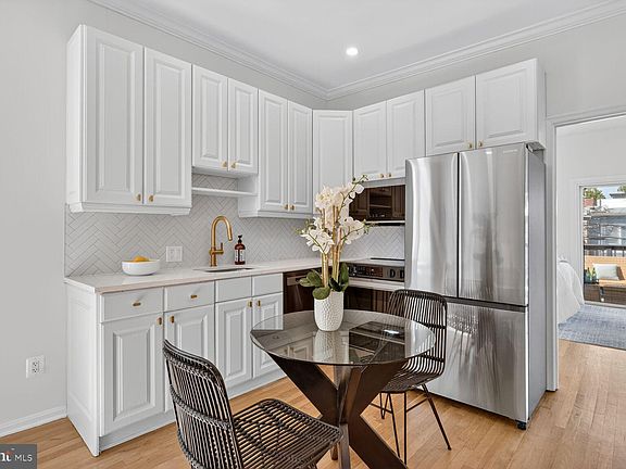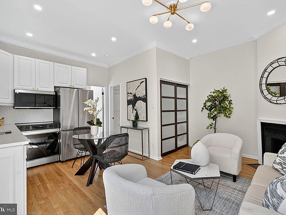 Welcome to Residence 6 at 2119 N St NW, a sophisticated and stylish urban retreat offering a seamless blend of indoor luxury and private outdoor living. This unique 1 bedroom, 1 bathroom home is located on the third floor of a beautiful end-unit row house on a quiet tree-lined street, and features an extraordinary private deck - perfect for al fresco dining, entertaining, or relaxing above the city at the nexus of Dupont Circle and West End. The open-concept living and dining area is bathed in direct sunlight, featuring soaring 9 foot 5 inch ceilings and a charming wood-burning fireplace that serves as a beautiful centerpiece. The space flows into a thoughtfully renovated kitchen, designed for both style and function. It boasts premium stainless steel appliances, sleek quartz countertops, and a chic herringbone tile backsplash. Recessed lighting throughout the unit highlights the modern finishes and creates a bright and airy atmosphere. The large bedroom is a true retreat, offering more direct sunlight, room for a home office, a spacious closet, and an adjacent beautifully updated bathroom. Additional features include a convenient in-unit, front-loading washer and dryer. Ideally located just moments from the neighborhood's best dining, shopping, and metro access. The condo fee is $180 per month.