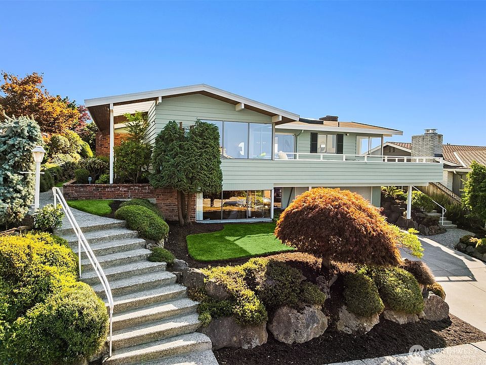 Perched up off the street sits this one owner mid-century home with amazing, sweeping views of the Olympics and Puget Sound! Watch the everchanging palate of skies, cruise ships, ferries & sunsets! Expansive front deck lets you relax and enjoy. This home was designed for entertaining! The flow is fantastic, and the spaces work perfectly. Both levels have views, are spacious & thoughtfully designed. Architect, Bud Erickson, was designer of 65 Nordstrom Stores! Olympic Manor has become one of the most sought-after neighborhoods in the city due to its mid-century architecture, sidewalks, proximity to downtown, desirable schools, markets, the beach & wonderful parks. The sense of community shines! Not to be missed, you will love living here!