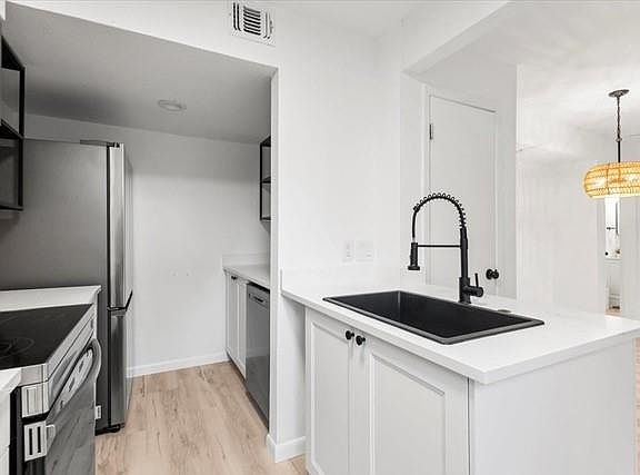 Amazing 2/1 single story condo completely remodeled. Beautiful new flooring throughout, updated light fixtures, cabinets, appliances, and much more. Desirable bottom floor, end unit with covered patio. Easy private parking in front. Convenient location close to downtown, South Lamar, 360, Restaurants, shopping, hiking, parks and much more.