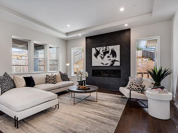 Single-level residence lives as a four bedroom or office, sits atop a private drive in the prestigious Fountaingrove neighborhood offering a rare blend of elegance, comfort, modern sophistication, and privacy. Spanning approximately 2,520 square feet, this thoughtfully designed home boasts 3 spacious ensuite bedrooms, 4 beautifully appointed bathrooms, and a versatile office that can easily serve as a 4th bedroom or guest retreat. From the moment you step inside, you're enveloped in a sense of effortless luxury and warmth. The open floor plan flows gracefully, ideal for both everyday living and grand-scale entertaining. At the heart of the home lies a truly show stopping chef's kitchen, outfitted with top-of-the-line Miele appliances, sleek motorized upper cabinetry, an oversized waterfall island perfect for gatherings, and a walk-in pantry offering both style and function. The lavish primary suite is a private sanctuary, featuring a serene spa-inspired bathroom with elegant finishes and dual walk-in closets designed to impress. Upscale finishes are found throughout the home, creating a refined ambiance at every turn. Enjoy seamless indoor/outdoor living with a covered patio that extends your entertaining space and invites year-round enjoyment.