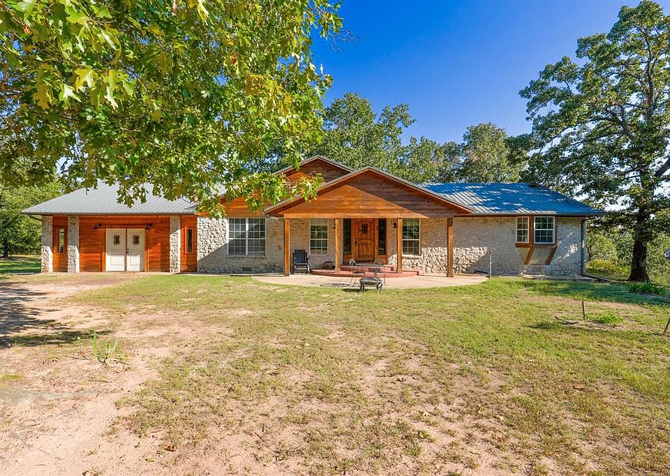 Discover the charm and modern comforts of this beautifully remodeled stone and pine ranch-style home, set on 18.34 acres. This property blends rustic elegance with contemporary amenities, making it a perfect retreat or a multigenerational living set up. Could easy be made into a 3 bedroom. Some extensive upgrades include city water access for house and both pastures, complete w yard hydrants. The property is fenced along the driveway. A newly installed loafing shed in one pasture adds functionality for livestock. The driveway has been enhanced, leading you to newly painted barns and outbuildings that complement the home’s aesthetic. The well house has been completely rebuilt with a fresh exterior and roof. Inside, the home features a new central heating and air system, installed less than three years ago. New gutters with leaf filters and extended downspouts, while custom pine shiplap adorns the exterior, freshly re-stained and sealed just this summer. Inside you’ll find a welcoming interior w new paint and flooring throughout, craftsman-style crown molding and a custom wood plank ceiling in the dining room. The kitchen is a true centerpiece, fully remodeled with a custom antique bar converted into an island, a farmhouse sink, & a retro-modern electric cast-iron range paired with a matching wall oven. New rustic lighting & wood plank wall paneling along with a frosted glass pantry door for. The home boasts 3 beautifully remodeled bathrooms, including a master bath featuring a rainfall shower. The middle bath offers a walk-in air-jet tub for ultimate relaxation. Throughout the home, new wooden doors, including a unique speakeasy entry door. Garage has been converted into an efficiency apartment, perfect for guests or rental opportunities. There’s a new well pump and piping and a generator hookup in the well house.This ranch-style home is not just a place to live it’s where comfort meets elegance, all set against the backdrop of sprawling land.