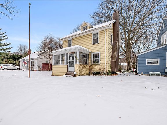 Adorable and charming 3-bedroom, 1-bath Colonial in Greece—full of character and opportunity! Step inside to a spacious living room highlighted by a cozy wood-burning fireplace and beautiful original gumwood trim that adds timeless warmth and charm. The huge eat-in kitchen offers an abundance of storage with light wood cabinetry, stainless steel appliances, and a generous dining area with views overlooking the backyard—perfect for everyday living and entertaining.