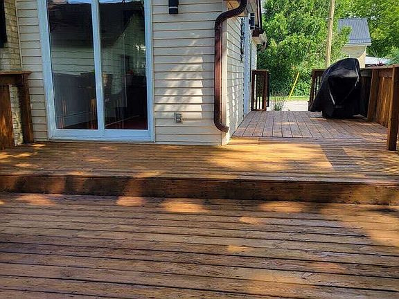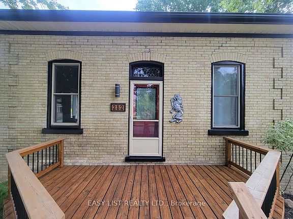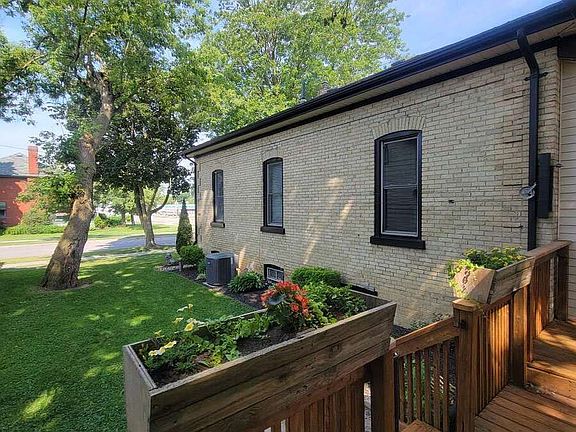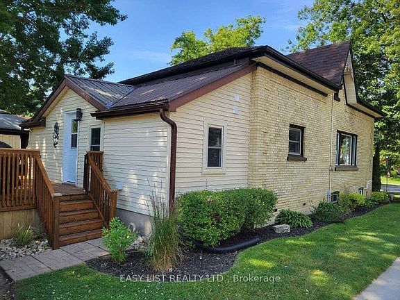 For more info on this property, please click the Brochure button. Beautifully renovated yellow-brick bungalow on a corner lot in the heart of town - just a short walk to the grocery store, LCBO, banks, and the downtown core. At the end of the street you'll find the arena, sports fields, tennis court, elementary and high schools, a skate park, and walking trails. The property is framed by six mature trees for shade and privacy, with perimeter gardens finished in black chip and a 7'8' steel garden shed. A freshly re-sealed deck extends your living space outdoors, offering plenty of room for dining and lounging. Inside, the home was fully gutted in 2021 and professionally finished, marrying warm classic details with modern touches. High ceilings, wainscoting, wood beams, and an exposed chimney highlight the home's original charm, while all-new matching Samsung black stainless steel appliances - counter-depth fridge, gas range, and dishwasher - anchor the kitchen. Main-floor laundry adds convenience. Layout: 2+1 bedrooms, 2 full bathrooms, open living/dining/kitchen, and a functional mudroom. Beautiful home!