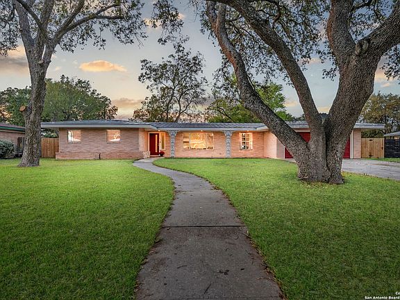 Experience luxury, comfort, and timeless character in the heart of highly desired Castle Hills. This beautifully renovated single story sits on an expansive treed lot just under one third of an acre with No HOA and No Restrictions, giving you freedom and flexibility that is hard to find in San Antonio. Enjoy exceptional proximity to the San Antonio International Airport, the Medical Center, premier dining, shopping, and major highways for effortless access everywhere you need to be. Step inside to discover a full top tier rehab where original charm meets modern sophistication. The preserved hardwood floors were sanded, refinished, and polished to perfection. Every bathroom has been fully transformed with stunning upgrades. The primary suite features new lighting, a double vanity with premium cabinetry, a walk in shower, and an elegant soaking tub wrapped in floor to ceiling tile with a glass enclosure. The secondary bath shines with upgraded cabinetry, new lighting, a fog free LED backlit mirror, new Kohler fixtures, and a fresh spa inspired feel.The kitchen is a complete showpiece with premium cabinetry, an oversized island with storage, a farm style sink, upgraded vent hood, new stove and dishwasher, and an open layout designed to welcome family and guests while entertaining. A flex room adds versatility for an office, guest suite, or media room. Enjoy the enclosed patio sunroom featuring stained cedar accents and new French doors that bathe the living space in natural light. Spacious rooms throughout create a warm and inviting flow unique to this single story home.Major upgrades include new electrical throughout brought up to current code with new interior and exterior breaker panels, fully replaced ductwork, brand new insulation in walls and ceilings, new LVP flooring in common areas, new interior and exterior doors, fresh paint throughout, and professional tree care by the Howe Foundation. The home is topped with a durable metal roof for long term peace of mind. This is Castle Hills living at its finest. Freedom. Craftsmanship. Location. A rare opportunity to own a beautifully restored home with only one original owner before the renovation.