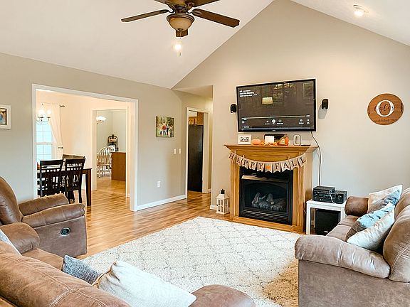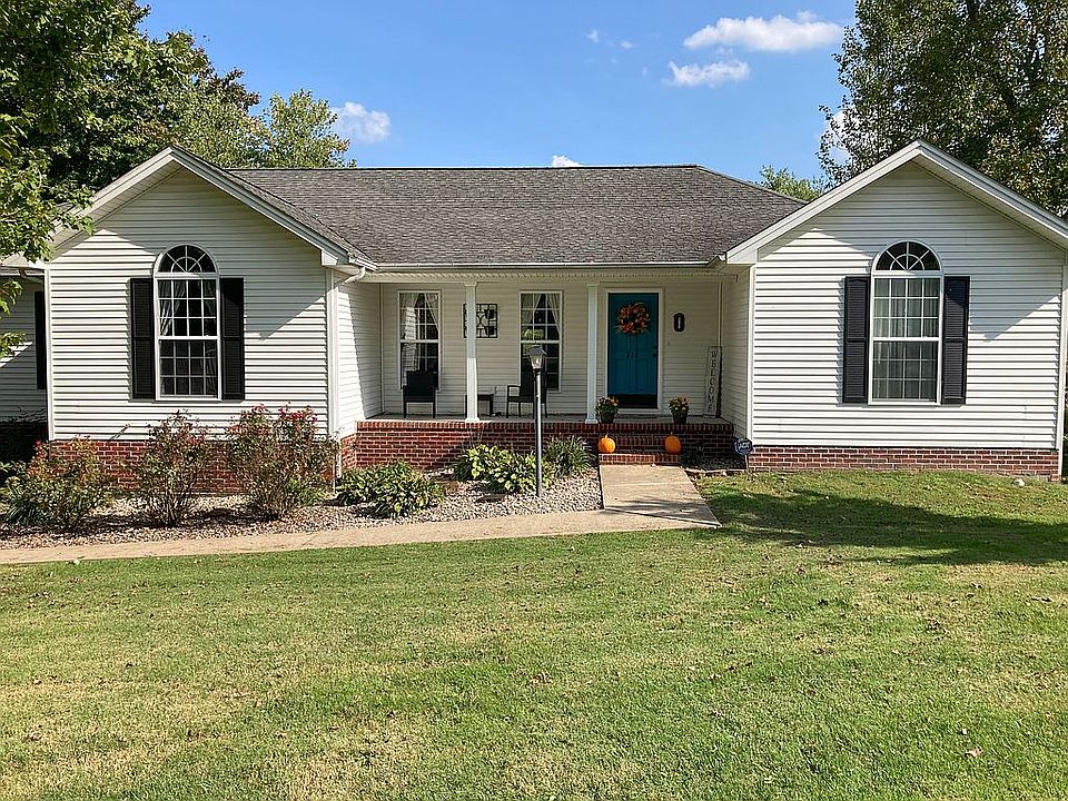 3 bedroom 2 bathroom home in the desired location of Autumn Ridge, just 10 minutes from the closest boat ramp at the lake. Large bedrooms, walk-in closet in master, large closets in bedrooms. Extra room/office, storage in walk-up attic and walk-in crawl space. Eat in kitchen and dining room, all appliances stay. Extra large 2 car garage. Security system installed and surround sound in living room with speakers on the back deck, great for entertaining. Large fenced in back yard with no one behind you. New 24’ mineral system above ground pool and 16x34 deck installed this year. A quiet farm view behind this property. No HOA, Farmers RECC electric, and natural gas heat. Call/txt 270-576-7459 to schedule an appointment to view.