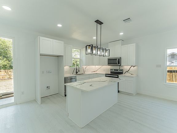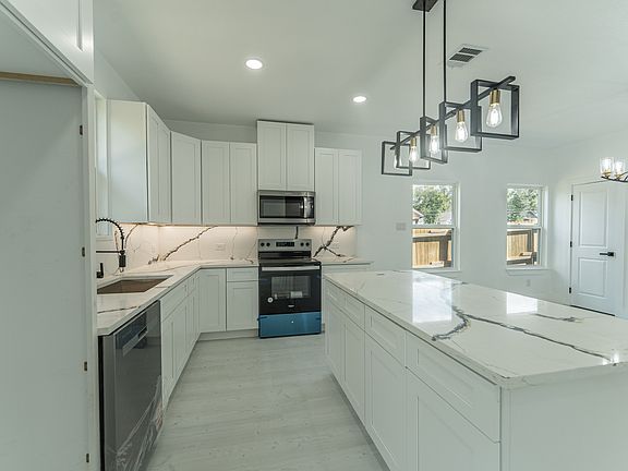 Recessed lightingStainless steel appliancesLarge fenced backyardDecorative lightingOpen layout