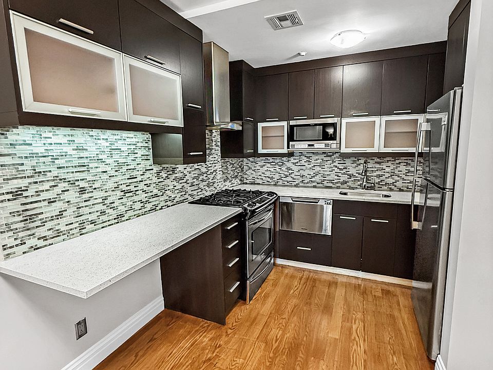 Modern bathCentral air and heatBuilt-in microwaveStainless steel appliancesSubway tileVented hoodDual flush toilet