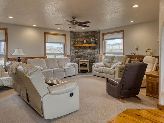 Meticulously cared-for stick-built home on 4.54 acres with mature trees and beautiful outdoor spaces!!! Main level features both a family room and living room, each with stone fireplaces, a large kitchen with ample counter space, two pantries, breakfast nook, formal dining, hardwood floors, and solid wood trim and doors! Two main-level primary suites offer excellent flexibility. Fully finished basement with dual staircases! Outside includes a front porch, large back patio, 30x40 heated shop with sauna and lean-to, huge garden with raised beds and wash station, sprinkler system, custom retaining wall, 12x20 shed with overhead door and concrete floors, and a stick-built playhouse. A truly exceptional property you must see!!!