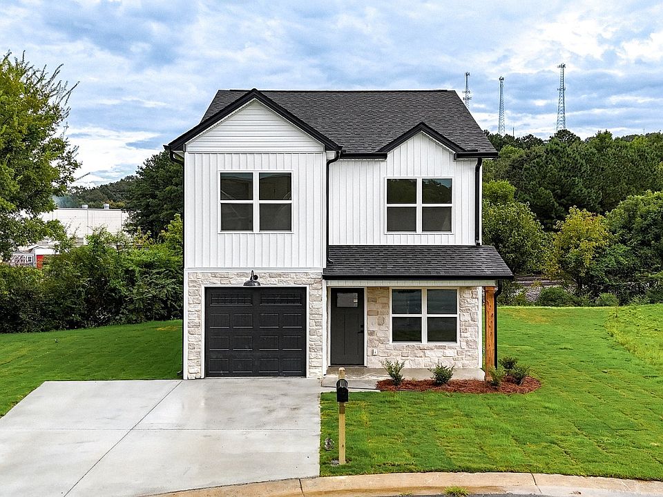 New Construction in Heritage Crossing! Discover this beautiful two-story home nestled on a cul-de-sac in Heritage Crossing, conveniently located near I-75 between Chattanooga and Atlanta. The exterior offers low-maintenance living with a covered front porch, rear patio perfect for entertaining, and a 1-car garage. Step inside to a bright, open concept living room, kitchen, and dining area highlighted by recessed lighting and durable LVP flooring throughout the entire home. A mudroom with storage for shoes, coats, and more, plus a stylish half bath on the main level, add both convenience and function. The kitchen is a showstopper, featuring stainless steel appliances, white cabinetry, a farmhouse sink, and a spacious walk-in pantry. Upstairs, retreat to the primary suite with a walk-in closet and private en-suite bathroom boasting a double vanity and tub/shower combo. Two additional bedrooms, a full bathroom, and a conveniently located laundry room complete the second level. This thoughtfully designed home combines style, comfort, and functionality-perfect for modern living.