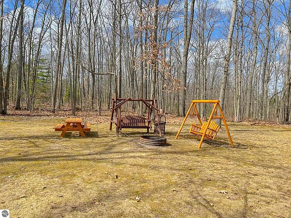 This 3-bedroom, 2-bath home offers a perfect blend of comfort and character, nestled on a scenic .9-acre hilltop lot. Enjoy partial lake views and a peaceful wooded setting just a half-mile from Higgins Lake and only a mile from the public boat launch. The home features a walkout lower-level family room, a cozy loft for extra sleeping space, and a partial basement for storage. A distinctive double-sided gas fireplace warms both the living room and kitchen, while a pellet stove in the lower level provides a cozy retreat during winter months. Outside, you'll find a private backyard with wooded trails ideal for ATVs or peaceful nature walks. A true four-season getaway!