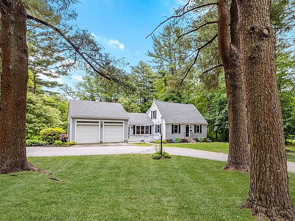 Picture Perfect 3 bedroom Cape with over 2 private acres abutting conservation. First floor offers an open kitchen with stainless appliances, an island to socialize at, an amazing amount of storage space and opens to a cathedral ceiling living room with a wood-burning fireplace with access to the back deck and offers tons of natural sunlight. There is a bedroom on the main floor that could double as an office too. A full bath and laundry round off the first floor. Upstairs offers 2 bedrooms with hardwood floors and a closet, there is also an oversized bathroom. The lower level with tile flooring will not disappoint as it's a walkout with French doors to the private backyard. If you enjoy walking along sidewalks, being near Route 3 or top rated shops and restaurants, then this house is for you; it's all only 1-2 miles away.
