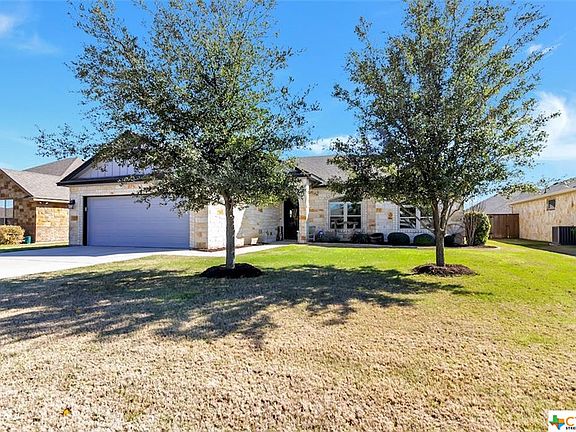 This beautiful home provides a spacious family room w/stone fireplace and an open kitchen w/Granite counters, Great hard tile flooring, spectacular multi-layered Crown Molding w/recessed lighting.Family room features tall glass windows, breakfast dining area w/a full-view window and full glass door that reveals a Covered Patio with large fenced backyard. Luxurious Master BTH sep/tub+shwr. Utility & Laundry w/sink and cabinets. New Carpet, Custom Blinds, New paint inside and out, New Stove and more. Eye catching back patio with stenciled concrete! Conveniently located to the grocery store and restaurants. Must see!!