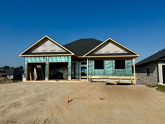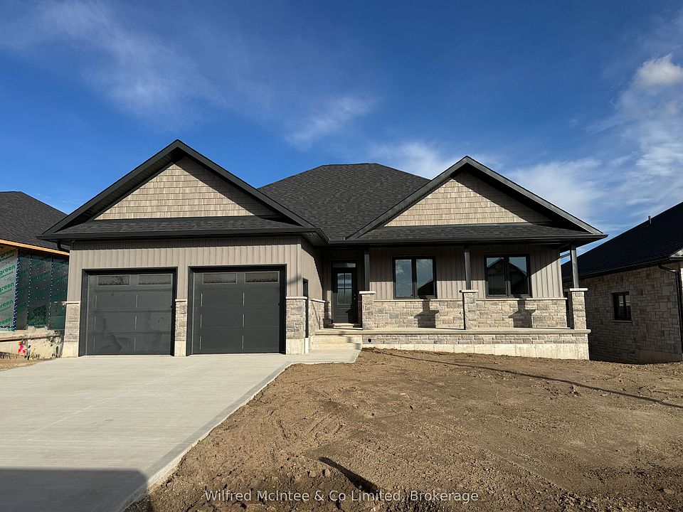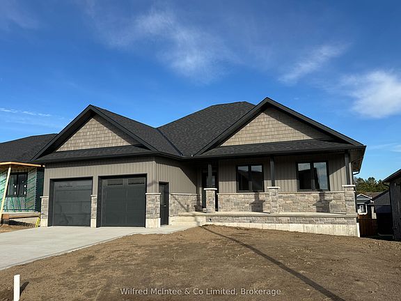 Welcome to this brand new 3-bedroom, 2-bath bungalow located in Walker West Estates, one of Walkerton's most sought-after neighbourhoods. This thoughtfully designed home offers an open-concept layout featuring luxury vinyl plank flooring, a cozy gas fireplace, and a stylish kitchen ideal for everyday living and entertaining. The spacious primary suite includes a walk-in closet and a private ensuite bathroom for added comfort. Enjoy outdoor living on the covered rear porch and the convenience of a double car garage. The walk-out basement provides excellent potential for additional living space and can be finished for an additional cost. This home also includes a double concrete driveway, fully sodded yard, and is protected under the Tarion Warranty Program for peace of mind. Modern design, quality finishes, and a prime location .