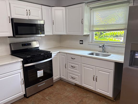 This is a well-maintained 3 bedroom ranch style house with private parking in the large driveway as well as garage parking. There is a large yard for your enjoyment. Appliances are included and there are gleaming hardwood floors throughout. This is a nice dead end street in a residential neighborhood.