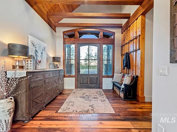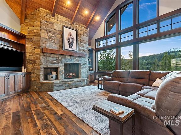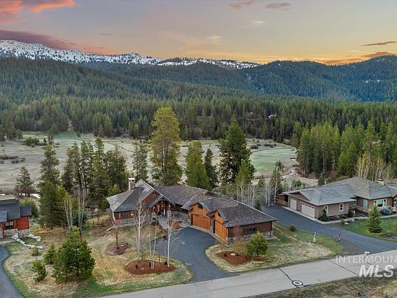 Welcome to this Mountain retreat that offers luxury and comfort on a premier golf course with breathtaking views in Jug Mountain Ranch. Featuring 4 ensuite bedrooms with two master suites, 4.5 baths all with heated floors, a custom bunk room, and reclaimed hardwood floors, every detail is thoughtfully crafted. Other custom features include: a gourmet kitchen boasts Thermador appliances, a 60” range, steam oven, double fridge/freezer, double dishwashers, and a butler’s pantry. Enjoy three beautiful stone fireplaces, an entertainment room with surround sound, a hot tub and sauna, and a covered BBQ patio with a firepit. With a 4-car epoxy garage, Control4 smart home system, security system, and beautifully landscaped, fenced backyard, this is golf course living at its finest—located just minutes from downtown McCall, Payette lake, mountain biking, skiing, fishing & hiking. Two world-class ski resorts are just 30 minutes away. Experience the ultimate in luxury living with details at every turn.