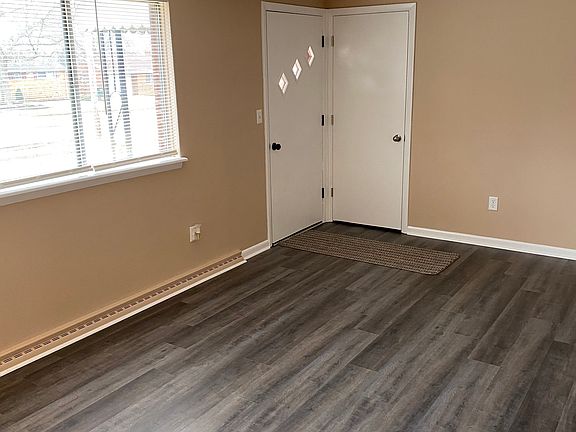 THE OPEN HOUSE SCHEDULED FOR FEB 16 IS CANCELLED. Move-in ready 3 bedroom 1 bath brick ranch in lovely neighborhood. All rooms have been freshly painted and home has new flooring throughout. Kitchen has been updated and includes all appliances. Walk out the sliding glass door from the kitchen/dining area to a covered patio. No neighbors behind you as the property backs up to a conservation area. In addition to the attached one-car garage, there is an oversized 2-car detached garage that is wired 220. Other features include central air, gas range, new garage door opener, glass block basement windows, and PEX plumbing. Freshly painted full basement could easily become a rec room, man cave or playroom.