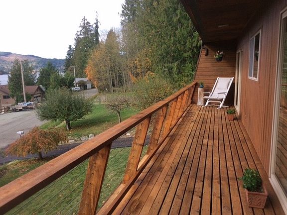 Home has an open living/dining room, stainless steel kitchen appliances, a family room, mud room, office/sewing room, front loading Maytag washer/dryer in huge laundry room. Laundry has been used as a playroom, office, and exercise room. Master bedroom has 2 closets, including a large walk-in closet. Master bedroom has an 8' sliding glass door to a deck. Two westward facing 40' decks have afternoon sun and views of the sunsets over Lake Samish. The house is only half the fun. A shared dock on Lake Samish includes boat moorage and is available for swimming, jet skiing, fishing, and other water sports. A rowboat and canoe are available. Woods that kids use to make trails and forts fill up the rest of the acre property. There are 3 apple trees that produce fruit every summer. The hills around Lake Samish have many trails for hiking and bicycling. Squire Lake Park and hiking trails are just over half a mile away. If you prefer bicycling on the road, paved roads surrounding the lake make a nice 7 mile ride. Being on the Whatcom/Skagit county line and only 1/2 mile from I-5 allows easy access to transportation to the north (Bellingham/Vancouver) or south (Burlington/Seattle). There is an apartment over the garage with a separate back entrance that is already occupied. This listing is for the main portion of the house, which is 2.5 floors and 2310 square feet. The garage is not available at this time. There is plenty of parking in the driveway and along the front of the property.