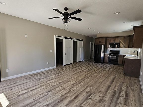 Newly Built Barndominium - Modern Comfort Meets Rustic Charm This stunning new barndominium features durable metal siding and roof complemented by beautiful cedar posts on the front and rear porches. Inside, you'll find a spacious 3-bedroom, 2-bath layout designed for comfortable modern living. The open-concept living and kitchen area offers a welcoming space for gatherings, complete with a large pantry and elegant quartz countertops. Electric stove with over the range microwave, dishwasher and garbage disposal. The fixtures are all black mat along with cabiinet door handles. The mudroom off the garage includes a convenient drop zone with a built-in bench, plus a laundry room equipped with washer and dryer. Relax in the large main bath featuring a granite countertop and a tub/shower combo, or retreat to the luxurious primary suite boasting quartz double sinks, an oversized walk-in shower, and a generous walk-in closet. Located close to shopping, dining, and entertainment, this home blends style, function, and convenienceall in one beautiful package. This company makes no warranty or representations about the contents of this data including room sizes & sq. footage. It is the responsibility of the parties looking at the property to satisfy themselves as to the accuracy of this.