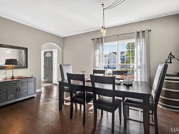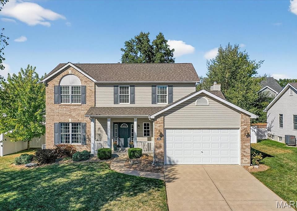 Welcome to your own private retreat in the heart of St. Charles County! This inviting two-story home offers the perfect mix of comfort and fun, featuring an in-ground saltwater pool, gazebo, and over 3,000 sq. ft. of finished living space. Step inside to find an open main floor with 9’ ceilings, quartz countertops, staggered cabinetry, bay windows, and a cozy great room centered around a wood-burning fireplace with a modern concrete surround. Upstairs, the spacious primary suite feels like a spa getaway with heated tile floors, a jetted tub, dual sinks, and a large walk-in closet.