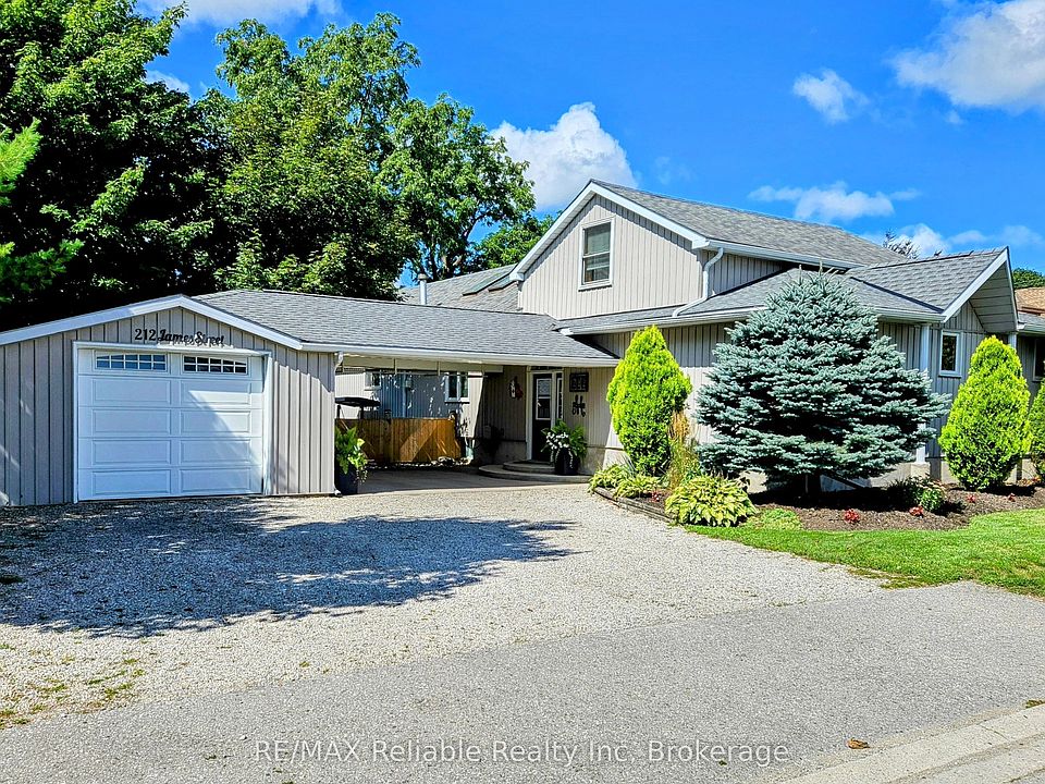Welcome to 212 James St, Clinton. This exceptional property offers the perfect blend of comfort, style, and functionality. With over 2,800 sq. ft. of finished living space, this home provides plenty of room for families, while its main-floor design makes it equally appealing to retirees. The homes main floor is designed for both everyday living and entertaining. The family room features hardwood floors, a cozy gas fireplace and a cathedral ceiling. Just steps away, the modern kitchen has plenty of cupboard space, giving you all the tools you need for meal prep. The adjoining dining area overlooks the backyard. The main floor primary suite is nothing short of spectacular. This oversized retreat features a walk-in closet, a spacious 4-piece ensuite, and a comfortable layout that allows for relaxation. With the primary bedroom located on the main floor, this home is perfectly suited for those who want a long-term living solution without sacrificing convenience. Also on the main floor, youll find a laundry room that doubles as an office. Upstairs, two bedrooms provide space for family or guests. The finished lower level boasts an expansive recreation room that offers endless opportunities for entertaining, featuring a gas fireplace, a bar, and even a pool table. Whether youre hosting gatherings, watching movies, or simply relaxing, this level offers space for it all, including a 2-piece bathroom and a utility/storage room. Step outside to discover your own backyard oasis. The large, fully fenced yard is perfect for kids, pets, or gardening enthusiasts. A charming deck and stone patio sitting area provide ideal spots for barbecues or enjoying quiet evenings. A garden shed offers storage while the detached garage ensures plenty of space for your vehicle, workshop, or seasonal storage. With its spacious layout, modern comforts, and inviting atmosphere, 212 James St is more than just a houseits a place youll love to call home.