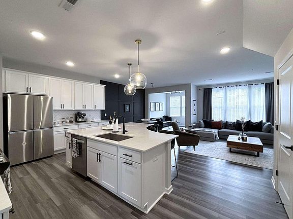 Built in 2022, this home blends modern elegance with everyday functionality. The open-concept main level features a spacious quartz island & countertops, premium stainless-steel appliances, custom tile backsplash, designer lighting, and an abundance of natural light through oversized windows. A cozy sunroom and upgraded architectural wall details add warmth and character to the space.