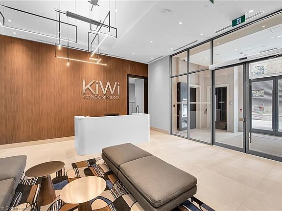 Wow remarkable condo in the heart of Downtown Hamilton Kiwi Condo built by Rosehaven Homes in 2023. Stunning East Village Model 582 sq ft South facing w/ balcony. 1 bedrm + den, 1 bathrm, in suite laundry, locker. Includes Stainless-steel fridge, stove & dishwasher, also white stackable washer & dryer. Upgraded white shaker cabinets, quartz counter, 9 ft ceilings, fantastic opportunity to live in downtown Hamilton. In the middle of it all: restaurant’s, shops, Go Station, LRT line, minutes to 403, close to hospitals. Bright Beautifully well-designed modern unit w/ the benefits of an elegant lobby, on-site security, party rm, rooftop patio with bbqs, lounge/sitting areas & spectacular views, yoga studio and pet spa. Heating and cooling Systems are rentals. Room sizes approx. Listing agent is Seller. Att 801, Sch B & Registrants Disclosure.