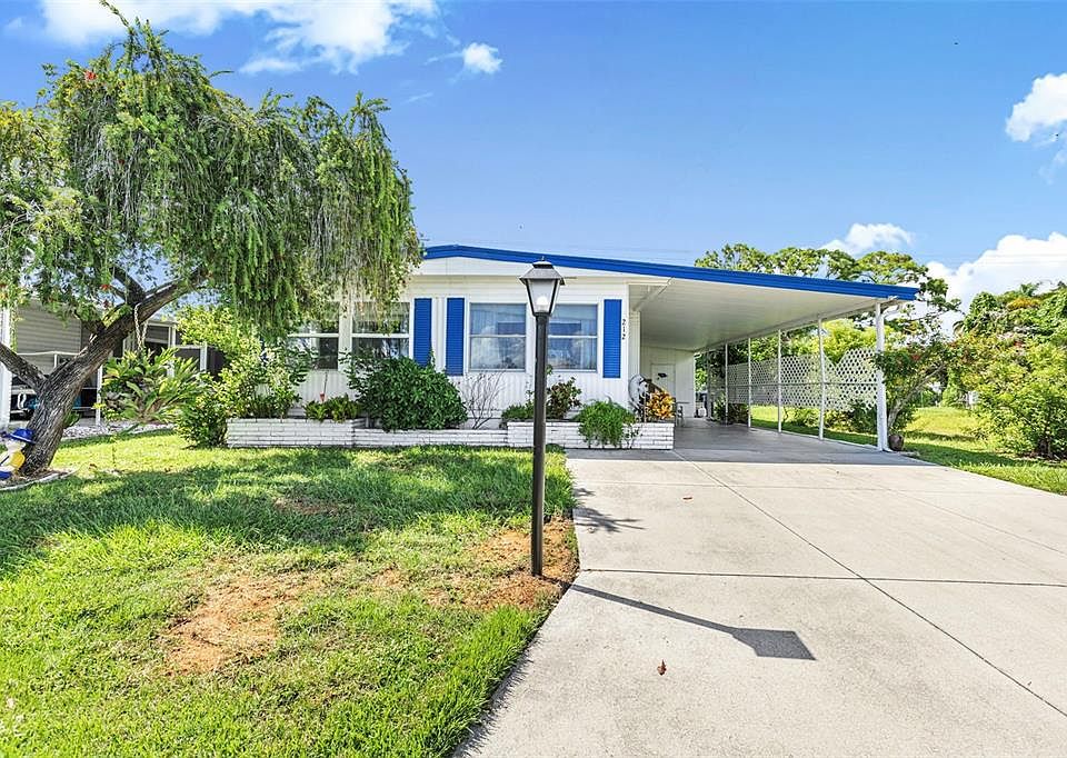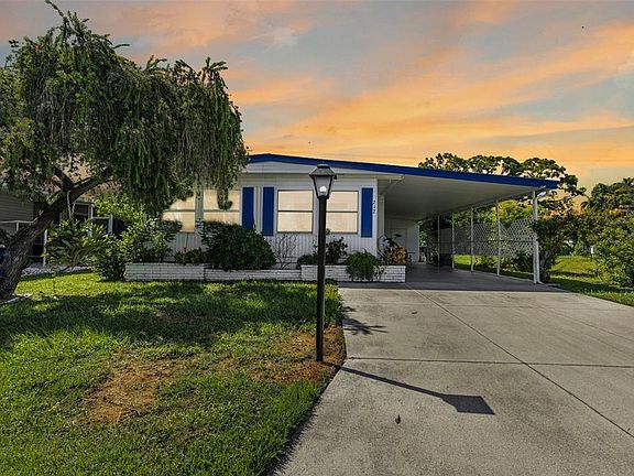 Step into a warm and inviting entryway that seamlessly flows into a charming kitchen, complete with newer appliances, a convenient pantry, and a cozy dining area. Adjoining is a formal dining room featuring a beautifully crafted built-in hutch, perfect for showcasing your treasured collectibles. Both the dining and living rooms are enhanced by sliding doors that lead to the glass-enclosed Florida room, where you can bask in breathtaking views of the sparkling lake. The guest bedroom offers a built-in closet for added convenience, while the guest bathroom is designed with a tasteful vanity, a linen chest, and a delightful tub/shower combination. Retreat to the primary bedroom, a serene haven that includes a dressing area with a stylish vanity and an expansive walk-in closet. The primary bathroom is a luxurious escape, featuring a sleek walk-in shower. This lovely home is not only adorned with newer appliances and water heater but also boasts a carport that connects to a practical utility room complete with a dryer. Experience the perfect blend of comfort and elegance in this delightful home! La Casa offers the ultimate lifestyle on Florida’s Gulf Coast is located between Sarasota and Fort Myers. It is convenient for shopping, sightseeing, golfing, fishing, and boating, as well as the culture and elegance for which Southwest Florida is noted. Residents and visitors enjoy the warmth of Southwest Florida winters in a relaxed and unhurried environment far removed from the hustle of Florida’s east coast. You’ll be surrounded by hundreds of palms reaching for the sky and beautiful mature lush landscaping which demonstrates the utmost level of care our property receives from residents and management. Wireless Internet (Wi-Fi) is available at the Clubhouse, Activity Building, and Recreation Hall area where our pools & spas are located, so you can catch some rays while you catch up on your email! Sound enticing? La Casa is a friendly, family community. You will be away from the hustle and bustle except when you want to be part of it. When you leave our gates, North Port is only 1.5 miles from the city center, where you will find every kind of retail store and service you could need. Come for a visit to this self-contained oasis and see for yourself why La Casa is the ultimate destination for both snowbirds and year-round.