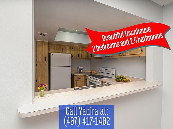 Beautiful Townhouse For Rent with 2 beds 2.5 baths. Spacious two-story unit with relaxing lake view in the heart of the Buena Ventura Lakes area in Kissimmee. This home features a full kitchen with clean crisp cabinets, appliances that include refrigerator, exhaust hood, and stove. It is equipped with central A/C and a 2nd floor balcony with relaxing lake view. There is assigned parking on property.