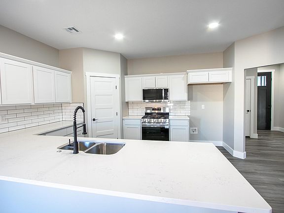 This new home offers a zero-entry design for easy access. The large kitchen features solid surface countertops and a walk-in pantry for plenty of storage. The big family room includes a cozy wood-burning fireplace, perfect for gatherings. The master bathroom is spacious with both a shower and a tub and access to the laundry room through the closet. Covered back patio to enjoy the cool evenings out of the sun. Easy access to Highway 50, I-135 and the golf course. The already low specials pay off in 2027. Won't last long!