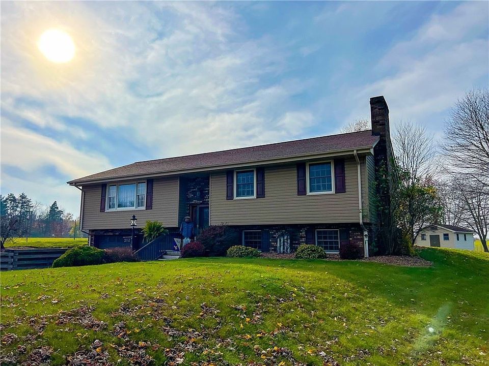 Enjoy living in this well kept three bedroom split entry on a level lot adjacent to Butler Farm Show grounds. Living room is oversized, and features hard coat plaster walls, eat in oak kitchen, an awesome finished lower level w/brick gas log fireplace, perfect for entertaining! Three full baths, a two stall integral garage, and two sheds complete this great home conveniently located and close to shopping, dining and major corridors!
