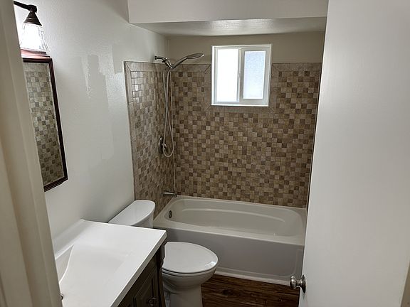 Two Bathrooms: Each bathroom includes a modern vanity, large medicine cabinet, and a bathtub with a tasteful tiled surround.