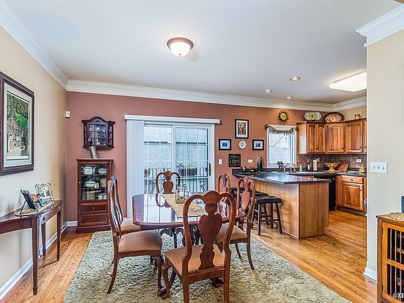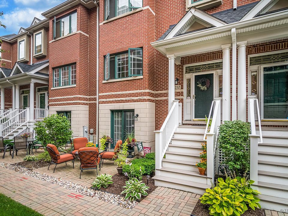 Beautiful brick and stone maintenance-free townhouse with a spacious 2100 sq. ft. on four stories Extraordinary residential townhouse including fireplace, hardwood floors in main living area, 9 ceilings on the 1st floor, Pottery Barn decor, custom closet organizers, double crown molding, finished basement, and more! And only 25 minutes to Chicago and 15 minutes to O Hare Airport. Short walk to Metra & steps to downtown Elmhurst Elmhurst's many amenities such as dining, shopping, theater, museums, library, and civic center. Main floor highlights: Open floor plan perfect for entertaining Eye-catching gas fireplace Beautiful hardwood flooring throughout Custom front door with sidelights and transom 9 ceilings Custom lighting and ceiling fan Double crown molding Soaring columns which lend visual separation of dining and living areas Recessed lighting Powder room Custom cherry kitchen cabinetry Breakfast Bar Pantry with custom, adjustable shelving Tile backsplash Upscale GE range and refrigerator and Whirlpool dishwasher all included Extra-wide sliding glass door to 4 x 9 balcony with wrought-iron railing Second-floor highlights: Two bedrooms both with custom ceiling fans, full baths with ceramic flooring, and walk-in closets with custom closet organizers. Huge master bedroom has tray ceiling, with oversized soaking tub and separate walk-in shower. Conveniently located laundry room with upscale washer & dryer Easy access to 50 gallon hot water heater Lots of storage Ground floor highlights: Family room as possible third bedroom! French doors leading to brick-paver front patio Custom tiled foyer Basement highlights: Bright and cozy finished basement, perfect for home office Recessed lighting Storage, storage, storage! Phone jacks, cable, pre-wired for sound system Other amenities: Whole house humidifier Security system Custom 2 window blinds throughout Oak rail and spindle staircases Unique, rounded drywall corners throughout! Lovely ceiling fans in living room, family room, and bedrooms Upgraded carpet Custom paint Thermopane windows Classic, white, six-panel doors Landscaped grounds with birds singing in the trees and rabbits among