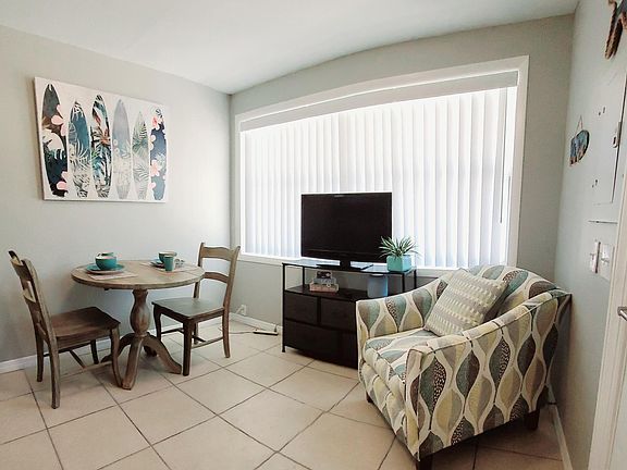 Cozy Furnished 1st Floor Beachside Studio .25 miles from the ocean Newly Renovated, New A/C, New Granite, New Cabinets, New Paint, Fully Furnished, onsite laundry. Walk to the Peabody, Ocean Center, Daytona Lagoon Ocean Walk Shoppes, Movie theater, and other restaurants and the famous Bandshell with free concerts. The building is recently painted on the exterior as well as interior , new pavers and landscaping. Owner pays for water, trash and sewer. Renter responsible for Electric and Wi-Fi Cable No Pets, No Smoking
