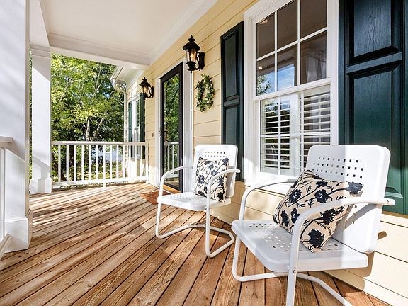 Cozy gas fireplaceRocking chair front porchCathedral ceilingsBright sunroomCharming plantation shutters