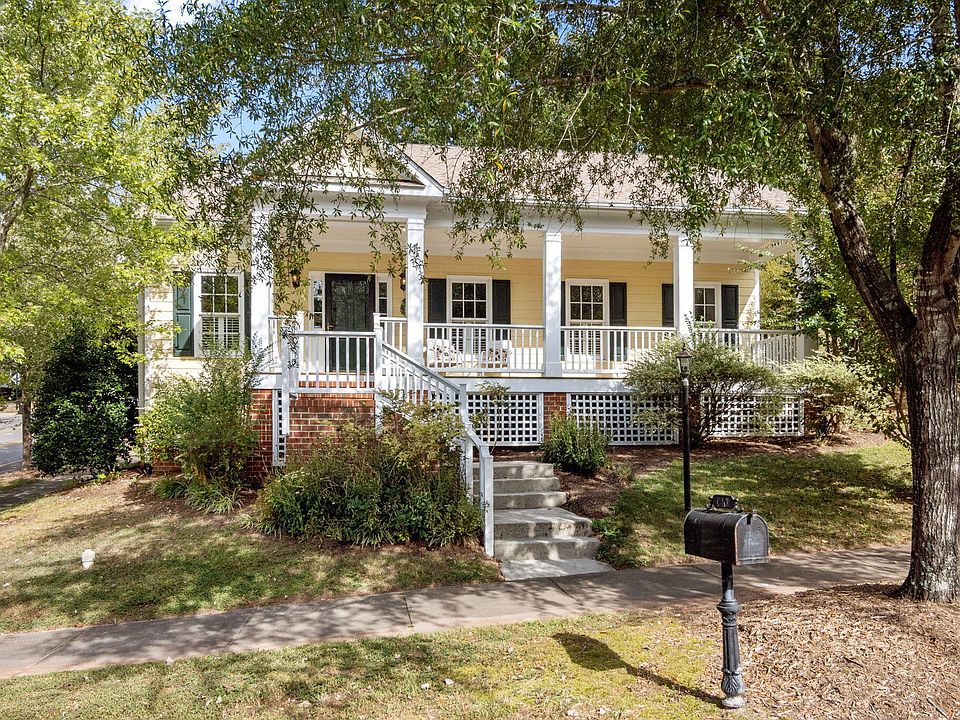Welcome to 212 Old Barn Lane in Meadowmont! This delightful home offers convenient one-level living with cathedral ceilings and charming plantation shutters in the living areas and master bedroom, creating an inviting atmosphere. The kitchen, dining, and living rooms are all open, complimented by a cozy gas fireplace. The second bedroom includes additional space—ideal for an office or flex area. Enjoy the beautiful open view from the rocking chair front porch and unwind in the bright sunroom at the back, perfect for relaxation. Minutes to the UNC Wellness Center, grocery store, Starbucks, YMCA pool, playgrounds, walking trails, Rashkis Elementary School, and Meadowmont Village with restaurants and shops. This amazing location offers easy access to UNC, Duke, hospitals, and Universities. Don't miss out on this gem! ***Fresh interior paint