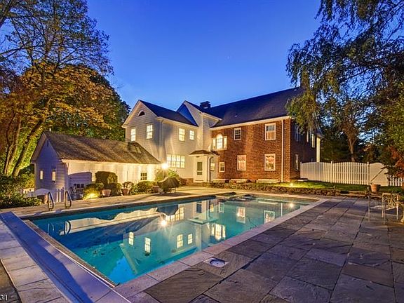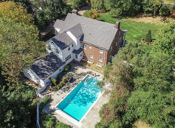 Elegant Brick Georgian Colonial with 5 bedrooms, a beautiful new eat-in kitchen and 6 new baths on stunning 1.1 acre property with stunning pool with great privacy! Master Bedroom Suite has a sitting room with fireplace and walk-in closet, and the spa-like master bath is stunning with high ceilings, a jacuzzi tub, shower and radiant heated floors. The second bedroom also features a fireplace, walk-in closet and new en suite bath. 2 more bedrooms on the 2nd level, each with a new en suite bath. The home features several improvements: new Pella windows in 2009, new 30 year roof in 2015 and new gas hot water heater in 2016. The home sits on over an acre of beautifully manicured property with stunning pool and new pool house bathroom.