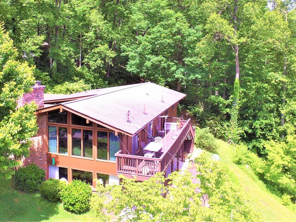 WOW! This view is a stunner and unobstructed as the empty lot adjacent is owned by the state of Tennessee. Evenings sitting and watching the fireflies dance and the sun sprinkling glittering confetti on the water--you will never want to leave. The interior boasts expansive windows and vaulted ceilings with deck access from the kitchen, dining, and living rooms. The walk-out basement has a full bath, laundry room, large bonus space with fireplace, and storage, storage, storage. This space could accommodate a 4th or 5th bedroom with a little work. The interior possibilities are only limited by your vision. Make this house your home today and relax and enjoy the view.