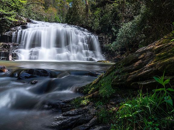 Become enchanted by the sounds of the rushing river that meanders around the forest and through the yard of this three-bedroom, two-bath home nestled on over 37 acres. Known as Caddis Falls, this residence was built in 2018 as a retreat to enjoy everything the wilderness has to offer: serene landscapes, fishing on an expansive run of private waters, hiking trails that lead to magnificent waterfalls rivaling those of national parks, and the mesmerizing soundtrack of endless nature. Surrounded by Nantahala National Forest, this two-story home provides a kitchen with stainless steel appliances and quartz countertops, a living area, and the primary bedroom and bathroom on the main floor. The second floor holds the second bathroom and two additional bedrooms, one with access to a private balcony. Be captivated by nature with a leisurely cup of coffee in multiple areas outside: the covered porch, the covered balcony, or sitting around the fire pit. Three additional permitted home sites on the property provide the potential for increased privacy for friends and family. Conveniently located 15 minutes from the historic town of Franklin, NC, and 20-30 minutes from the Great Smokey Mountains gateway in Dillard and Lake Burton, GA; with a plethora of things to do on and off the property and a relaxing lodge to return to, this is the perfect place to rejuvenate for your next adventure.