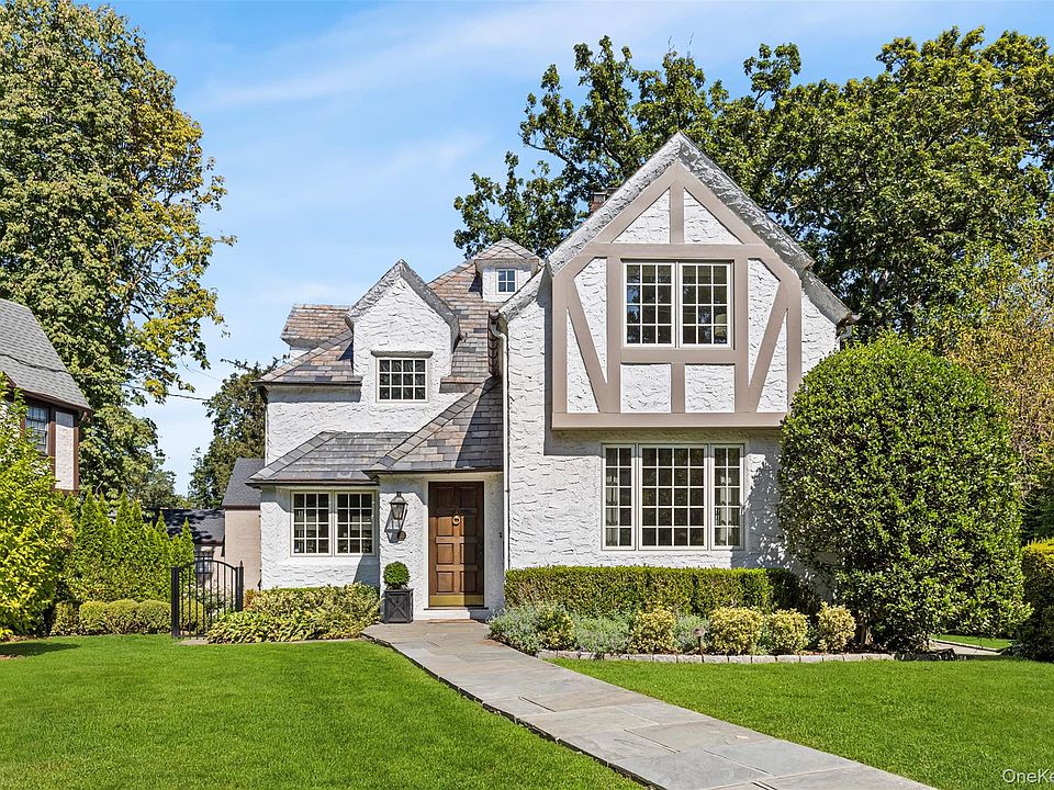 This charming sun drenched Tudor in the coveted Cedar Knolls section of Bronxville PO blends timeless architecture with thoughtful updates. Classic details include a stucco and wood exterior, handsome slate roof, beamed ceilings, and hardwood floors, while modern features such as Jeld-Wen windows, renovated kitchen and baths, central A/C, and first-floor laundry provide comfort and convenience. inside, graciously appointed formal rooms open to the updated kitchen, which steps down to a spacious family room. From here, a windowed door leads to a screened porch and beautifully landscaped yard, creating an ideal setting for indoor-outdoor living and entertaining. Upstairs, the serene primary suite offers a renovated en-suite bath and walk-in closet. Three additional bedrooms share a stylishly updated hall bath, providing plenty of space for family and guests. A two-car garage completes this turnkey home, combining historic charm and modern living in one of the Bronxville area's most desirable neighborhoods.
