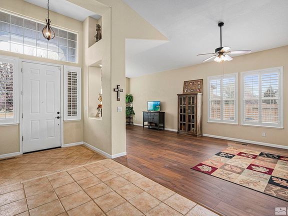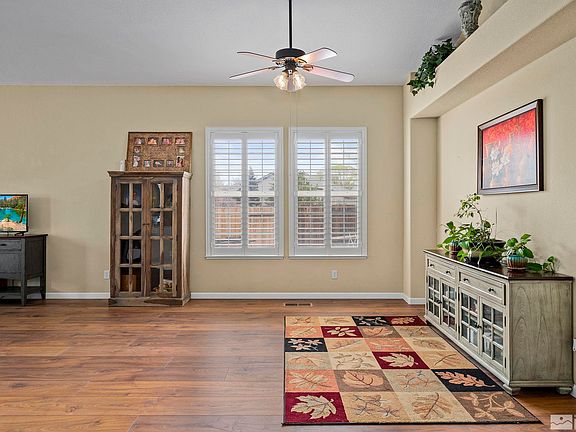Welcome to this one-of-a-kind, lovely, peaceful, resort-like setting on a .30 acre lot, spacious 3,281 sq. ft. home featuring 5 bedrooms, 3.5 bathroom, 3 car garage with upgraded garage doors. Elegant open-concept floor plan, stylish interior, new carpets, upgraded flooring, vaulted ceilings in the foyer and family room, a gourmet kitchen, abundance of Cherrywood cabinet space, quartz countertops, large walk-in pantry, and breakfast nook. Windows throughout are enhanced with...., plantation shutters, an abundance of light and stunning views of the mountains. Master bedroom is located on the main floor with a sliding door, access to the back patio and hot tub, large master bathroom with a jetted tub and walk-in closet. Head upstairs to 4 bedrooms and 2 bathrooms, each with majestic mountainous views and two HVAC units. Professional landscaping featuring beautifully manicured yards, mature trees, devoted patio space, large paver patio with 3 sets of pergolas extending the width of the home, classy paver patio deck and peaceful walking path, tranquil waterfall oasis ready for entertaining or a private retreat. Added bonus…no rear neighbors and unobstructed serene stunning mountain views. Close to Carson City, the prestigious state capital, access to Tahoe and Reno as well as historic Virginia City, convenient gateway to Highway 50 and the nation's largest industrial park. Room for toys, endless recreational areas and more. 3D Virtual Tour Available. This home is move-in ready…MOTIVATED SELLERS!!!