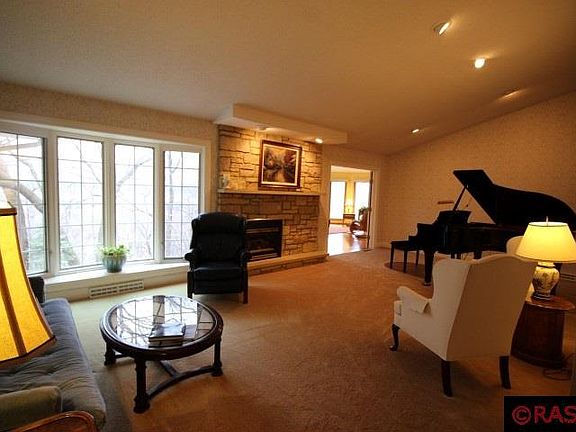 This immaculate walkout rambler offers 5 bdrms, 4 bths & sits of a gorgeous ravine lot in Upper N. Mankato. It offers quality construction from top to bottom with just over 3000 sq ft on the mn fl! This home is a rare find at its price & offers a floor plan that delivers ample living space without having to downsize any of the bedrooms! You will immediately fall in love with this home & the panoramic view of the city that is offered from not only the living rm but the family rooms, kitchen, mstr bdrm & 3 season/sunroom that overlooks the summer rose gardens. The large living room w/bow window also offers a gas fireplace & flows right into the spacious great room & kitchen area of the home. Just around the corner is a formal dining room, mud room & ½ bath. The original garage was converted into a wood shop but would easily convert back to a 3rd & fourth garage space. 3 same floor bedrooms includes a huge mstr suite with bath, Full bath with Jetted tub, combination walk-in closet & laundry room not to forget that there is a 2nd laundry bay in lower level as well. Let the beautiful wood staircase from the upper family room lead you down to the rec room that is wrapped in full view windows of the serene backyard. A second family room with FP, bath, 4th & 5th bdrms & large storage rooms complete this area of the home. Imagine sitting back and relaxing on the deck, patio or sunroom while you listen to nature all while you're enjoying all that the 4 seasons in Minnesota has to offer!!