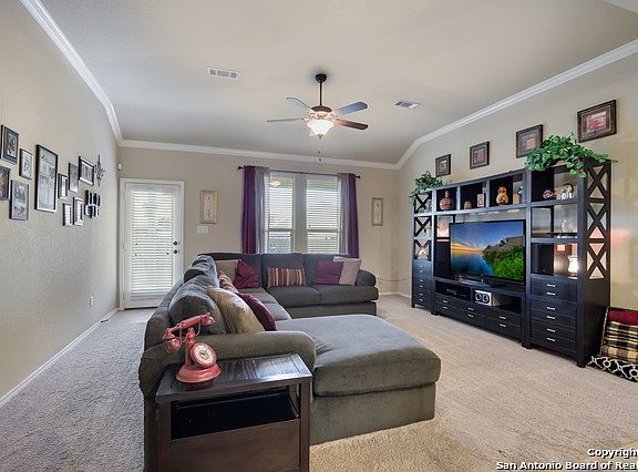 4 Bedroom, 2.5 Bath home in Cibolo, TX. Zoned for highly rated Steele High School. Don't miss this immaculate home! Lg master bedroom downstairs, w separate shower/tub and walk-in closet. Separate dining room plus a breakfast area and breakfast bar! Gameroom, 3 bedrooms upstairs, open concept living, high ceilings, crown molding, granite counters, tumbled travertine backsplash, mocha cabinets, 18"x18" tile floors, upgraded counters in bathrooms, XL tandem garage, covered patio, 3 sides brick and more!