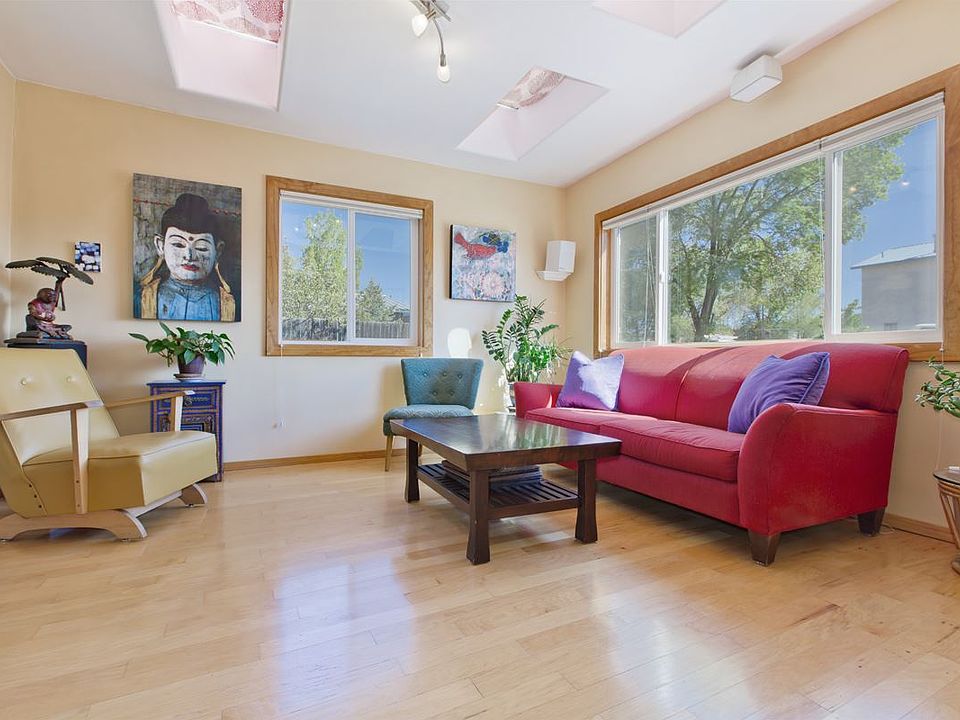 Living downtown has never felt more serene...or invigorating! This charming 1100 sq. ft. 3 bedroom/2 bath home abuts the Santa Fe River and the wonderful River Trail, giving the homeowner the opportunity to experience Santa Fe in a walking/biking lifestyle. With hickory flooring, beautiful landscaping, views of the foothills and lovely natural lighting, this light/bright property will win any home searcher's heart. Enjoy the expansive yard, including an outdoor firepit and your very own chicken coop.