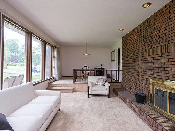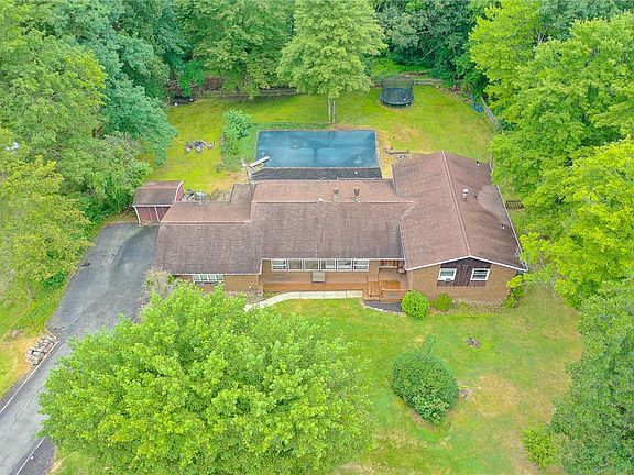 Beautiful Ranch home on over an acre wooded lot! This home welcomes you with a multi level concept & sunken in living room that features a woodburning fireplace surrounded by an expansive red brick wall. Dining room/sitting area sits above the living room. Enter into the eat- kitchen with plenty of space to create a dream gourmet space. Family room off kitchen also provides brick fireplace and access to back deck. Large master bedroom with three closets and en suite bathroom. Two additional bedrooms and full bathroom. Finished basement space provides everything you could imagine with game room area & bar, additional rec-room with space for pool table etc., work out space, office space, additional storage space, laundry room and third full bathroom. Walk out basement leads to fabulous wooded private backyard with inground pool and yard space great for entertaining. 2 car attached garage and shed. Convenience to so much but private and serene. Very quite & peaceful neighborhood.